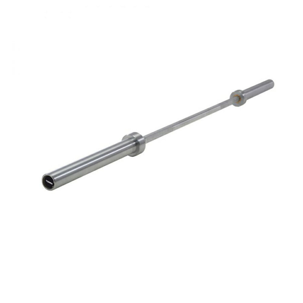 Bilanciere olimpico cromato con tornitura antiscivolo.
